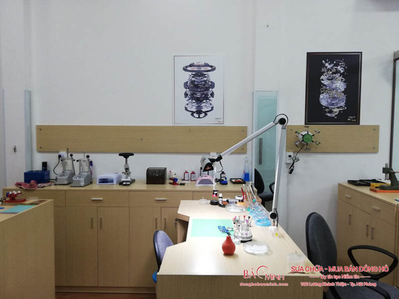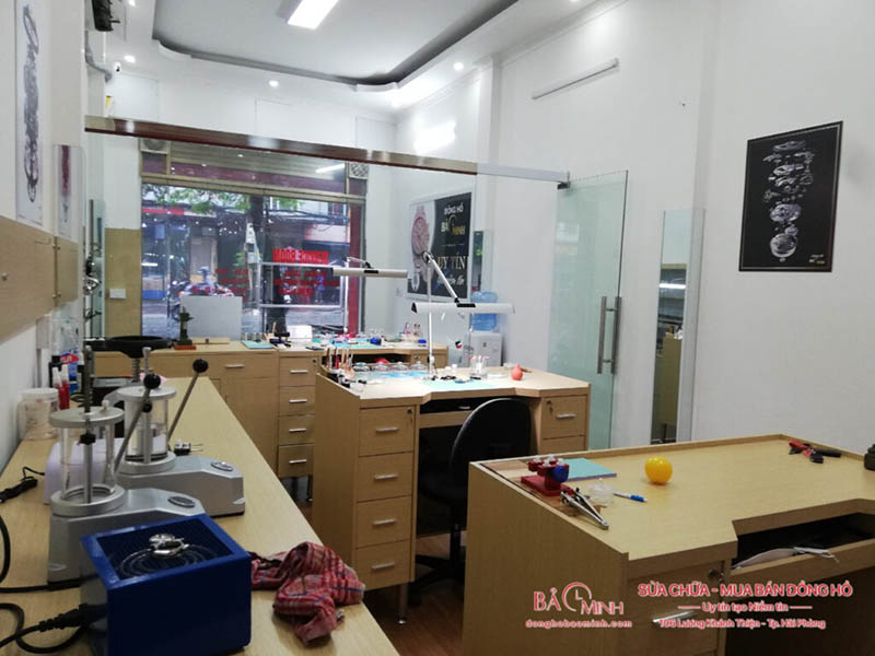 Ngoài ra, khi đến với Đồng Hồ Bảo Minh, khách hàng sẽ được trải nghiệm quy trình sửa chữa công khai, minh bạch. Phòng kỹ thuật được thiết kế kính để khách hàng có thể theo dõi trực tiếp kỹ thuật viên làm việc. Các thiết bị, máy móc đầy đủ và hiện đại theo tiêu chuẩn Quốc Tế.
